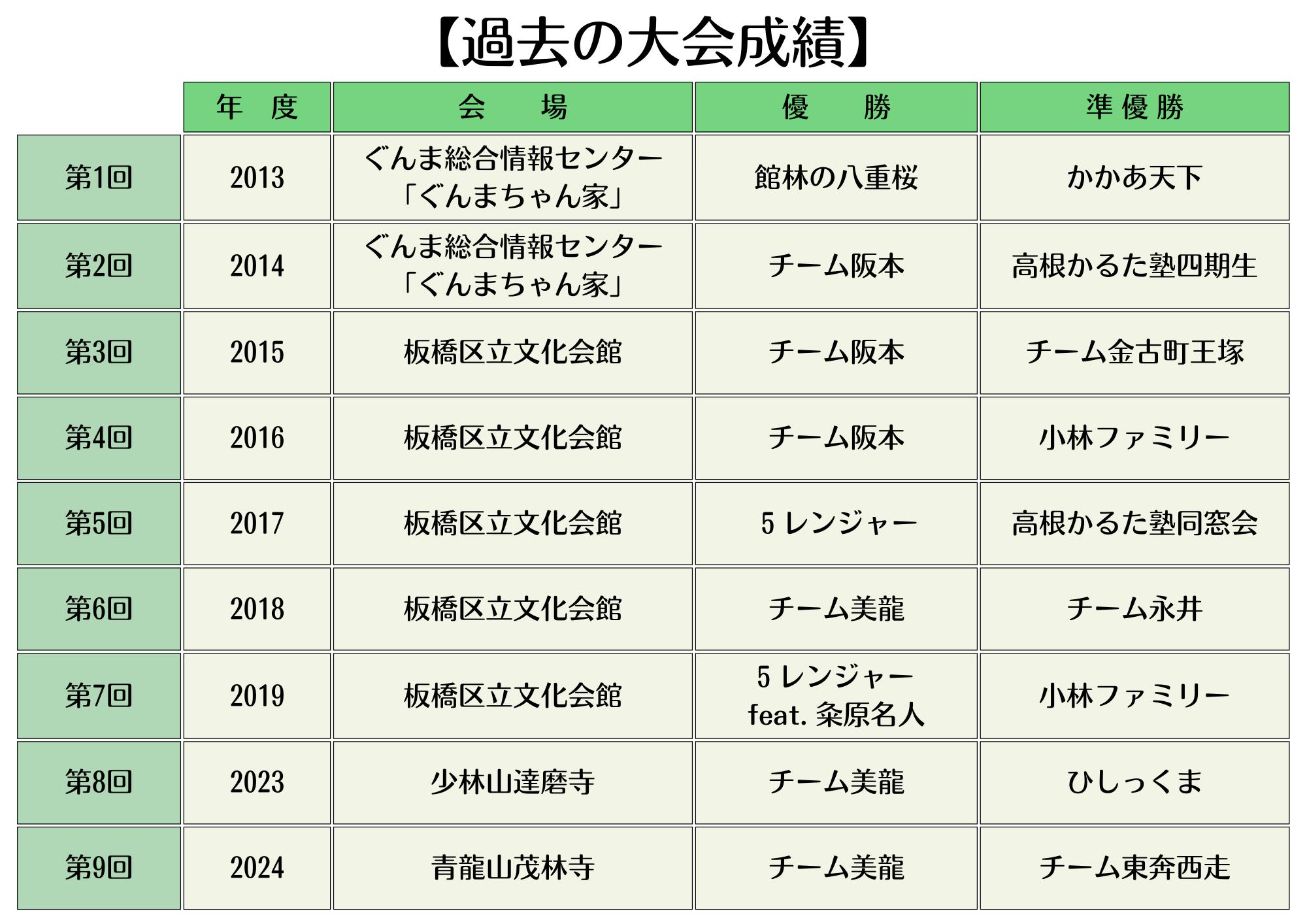 2013年2月23日に初の上毛かるたの全国大会となる『第1回KING OF JMK~おとな達の上毛かるた日本一決定戦~』を、当時銀座の歌舞伎座の前にあったアンテナショップ"ぐんまちゃん家"で開催して12年が経過しました。その後コロナ禍により開催ができなかった期間を除いて毎年の開催を重ね、過去9回で延べ200チームの方々に参戦いただきました。この場を借りて御礼申し上げます。