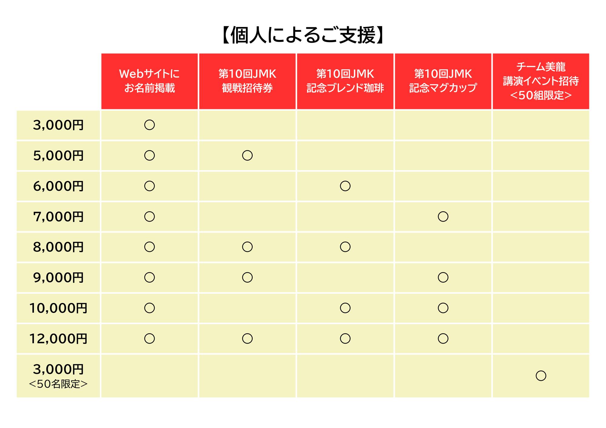 目標金額を超えた金額につきましては、KING OF JMKが今後開催を検討している以下の大会運営へ使用致します。