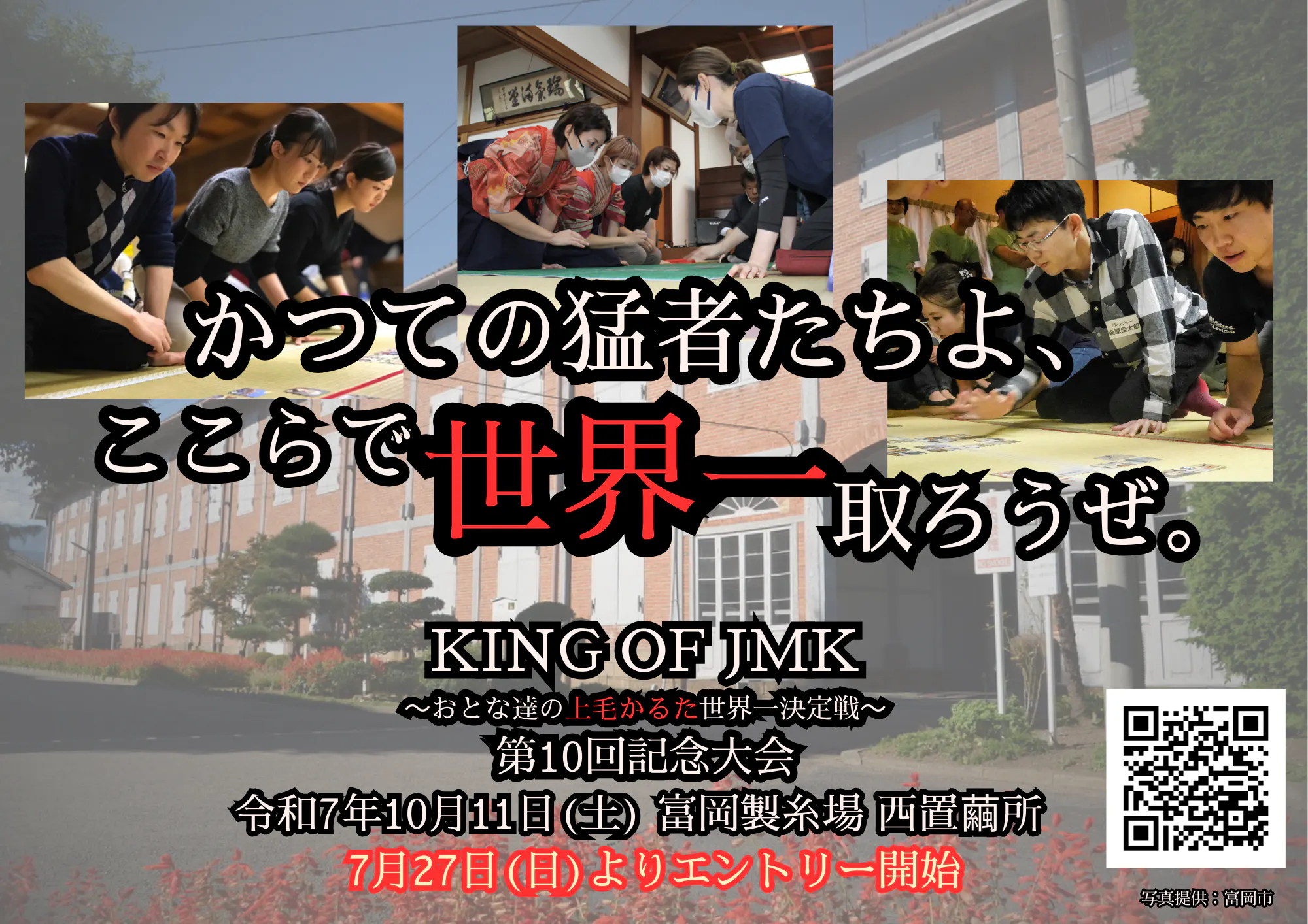 そんな想いが形となり、2013年に"KING OF JMK~おとな達の上毛かるた日本一決定戦~"は生まれました。そして2025年、KING OF JMKは第10回目を期に"世界一決定戦"へと生まれ変わります。