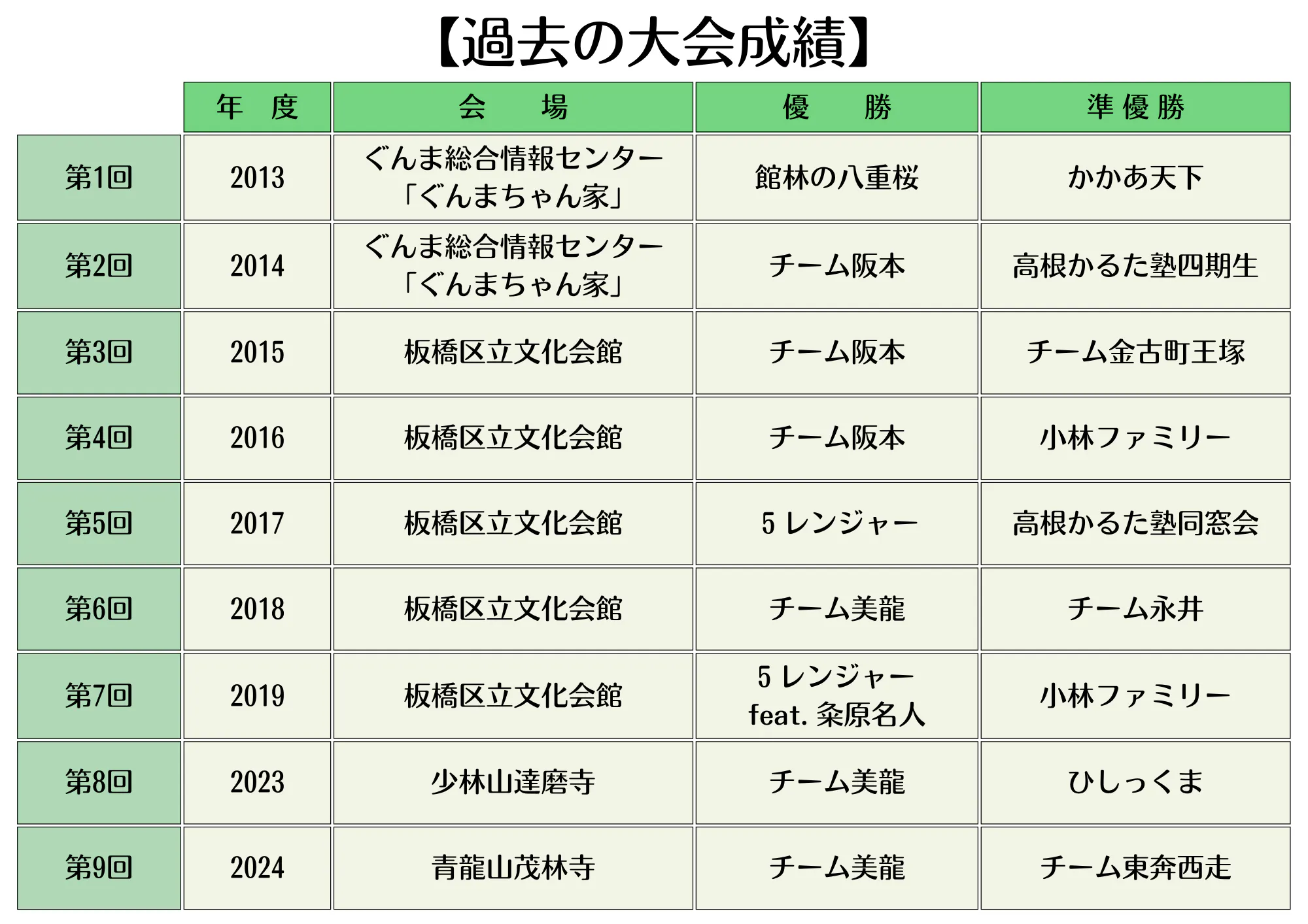 大会に先立ち、8月24日に前橋市内某所において前回王者『チーム美龍』の皆様の講演および対決イベントを開催します。上毛かるたは瞬発力の勝負というイメージが強いですが、強いチームはきちんとした戦略を持って試合に挑んでいます。