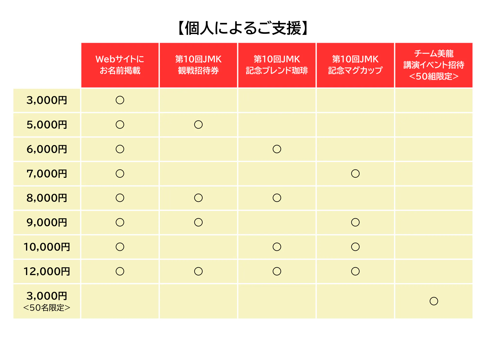 過去最多となる32チームの募集に加え、史上初となる世界遺産:富岡製糸場での開催、また史上初となる実況・解説付きの生中継を実現させる為、いただいたご支援は以下の通り、全て本大会の運営費と致します。