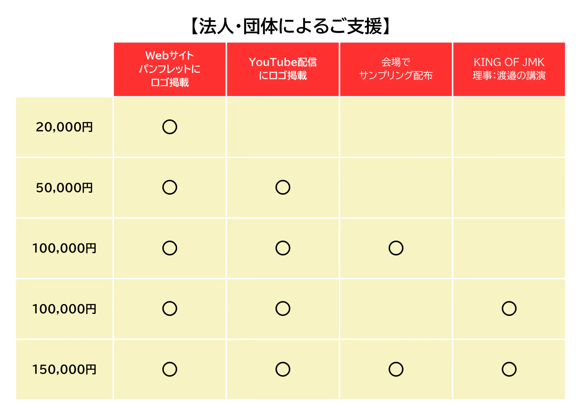 ご支援いただいた感謝を込めて、当日会場で選手や来場者様に配布するKING OF JMK第10回記念大会パンフレットにロゴを掲載いたします。