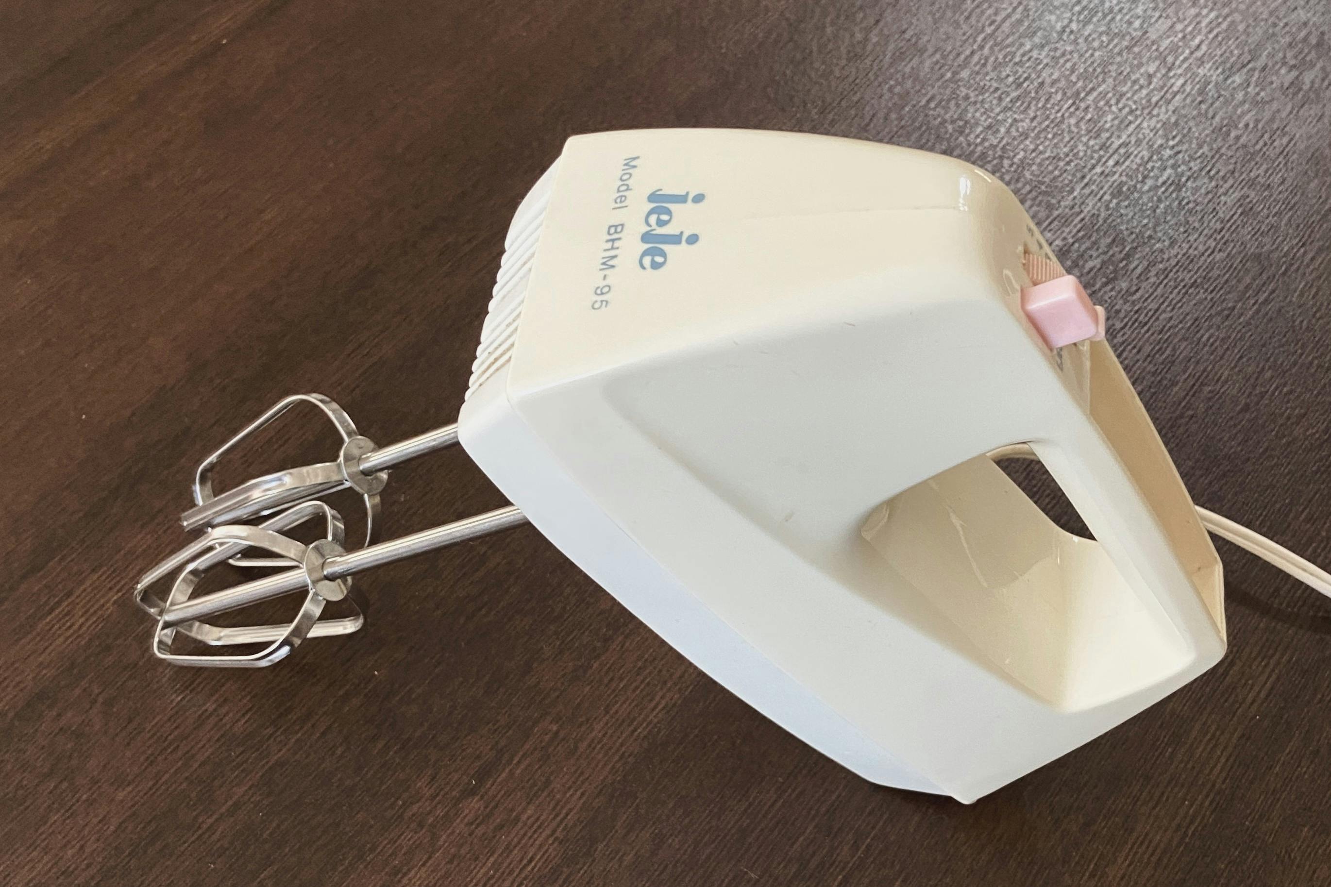 子どものころ、菓子職人だった父と一緒にケーキを作ったことがきっかけでお菓子作りが好きになりました。それから料理好きな母が使っていたハンドミキサーを譲ってもらってずっとお菓子作りを続けてきました。このハンドミキサーはもう40年も前のものですが今でも大切に使っていて私の原点であり相棒であり宝物と言えるものです。