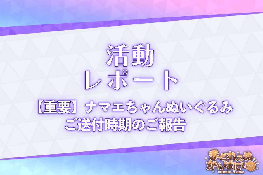 皆さん、こんにちは。ミッドナイトガールズRプロデューサーのフジヤマビルヂングです。「【グッズ支援】ナマエちゃんぬいぐるみコース」のコースリターンである「ナマエちゃんぬいぐるみ」につきまして、以下の日程にて発送が確定したため、ご報告いたします。▼グッズの配送について■グッズ配送日(到着日)2026年1月31日~2月1日までの期間にお手元に到着予定■ご不在の場合の対応・佐川急便様より、不在票がポストなどに投函されますのでお手数ですがそちらより再配達依頼をお願いいたします・また、長期不在や保管期限が迫っている際にはお電話でのご連絡も佐川急便様からございますので、到着していない場合などございましたらご確認いただけますと幸いです。・住所の不備、配送先不明等で配送不可の場合にはクラウドファンディングのメッセージ機能よりご連絡させていただきます。■その他配送元の表記 :MC配送センター配送品名の表記:雑貨想定より製造・検品・配送対応がとんとん拍子に進みまして、2月にお届けとお伝えしておりましたが2月頭にすぐお届けとなってしまいました。ご報告が急遽となり申し訳ございませんが、ナマエちゃんをお待ちいただいていた皆様は、ぜひかわいい彼 彼女を是非楽しみにお待ちくださいませ。それでは、失礼いたします。引き続きミッドナイトガールズRを何卒宜しくお願いいたします。