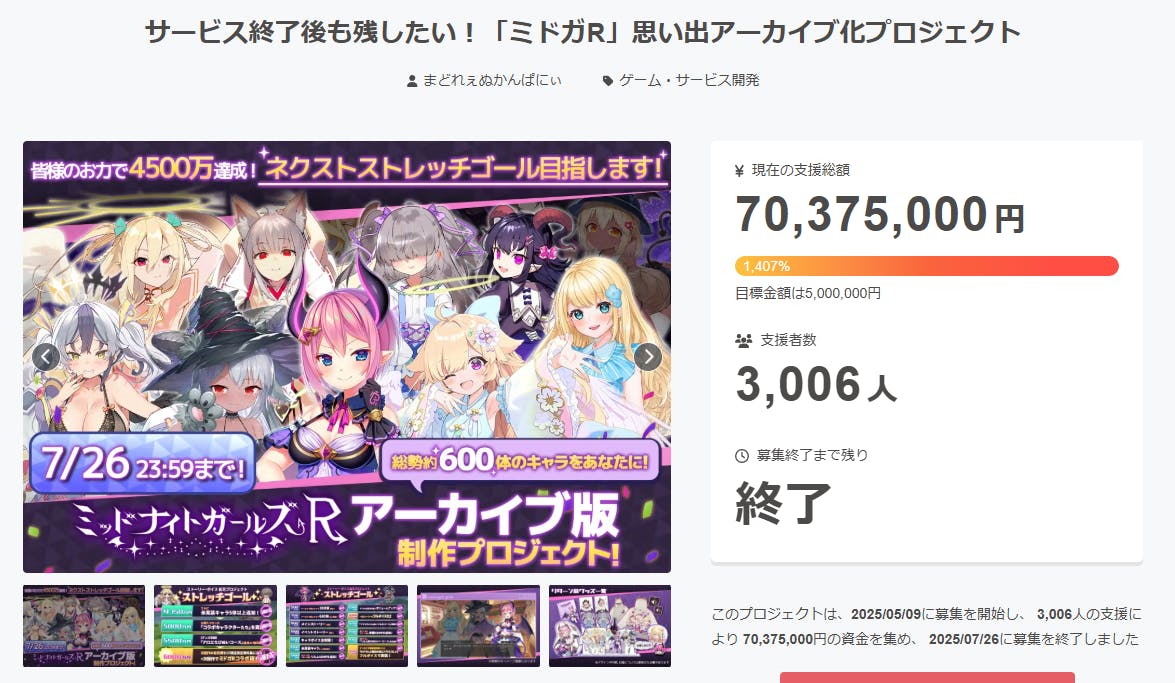 まさかサービス終了となった「ミッドナイトガールズR」のアーカイブ版を残すプロジェクトに