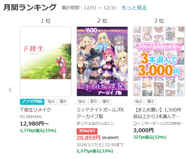 皆様のおかげで、FANZA様の「有料ゲーム」フロアにて