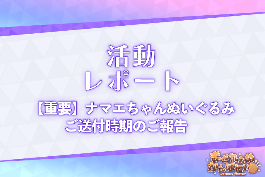 「ナマエちゃんぬいぐるみ」につきまして、以下の日程にて発送が確定したため、