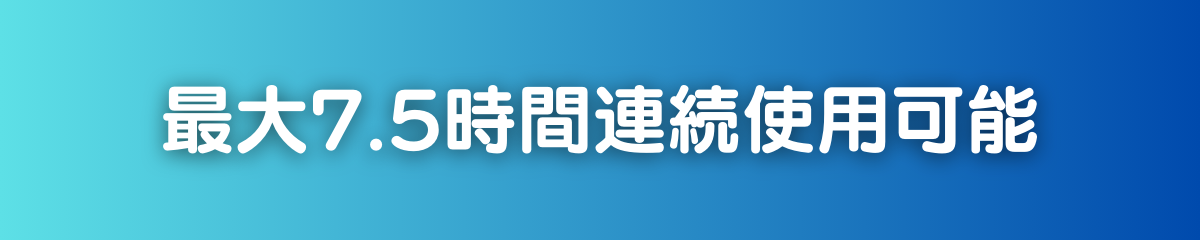 A. フル充電時に最大7.5時間の連続使用が可能です。ただし、使用する風量によって稼働時間は変動します。
