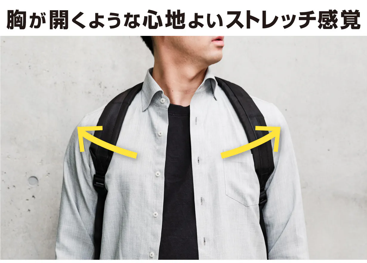 パソコンやスマホの使い過ぎによる猫背や巻き肩、スマホ首で悩んでいる方にも、普段使うバッグで毎日ストレッチ効果を感じることができます。