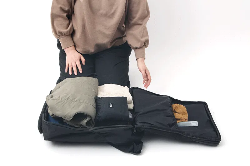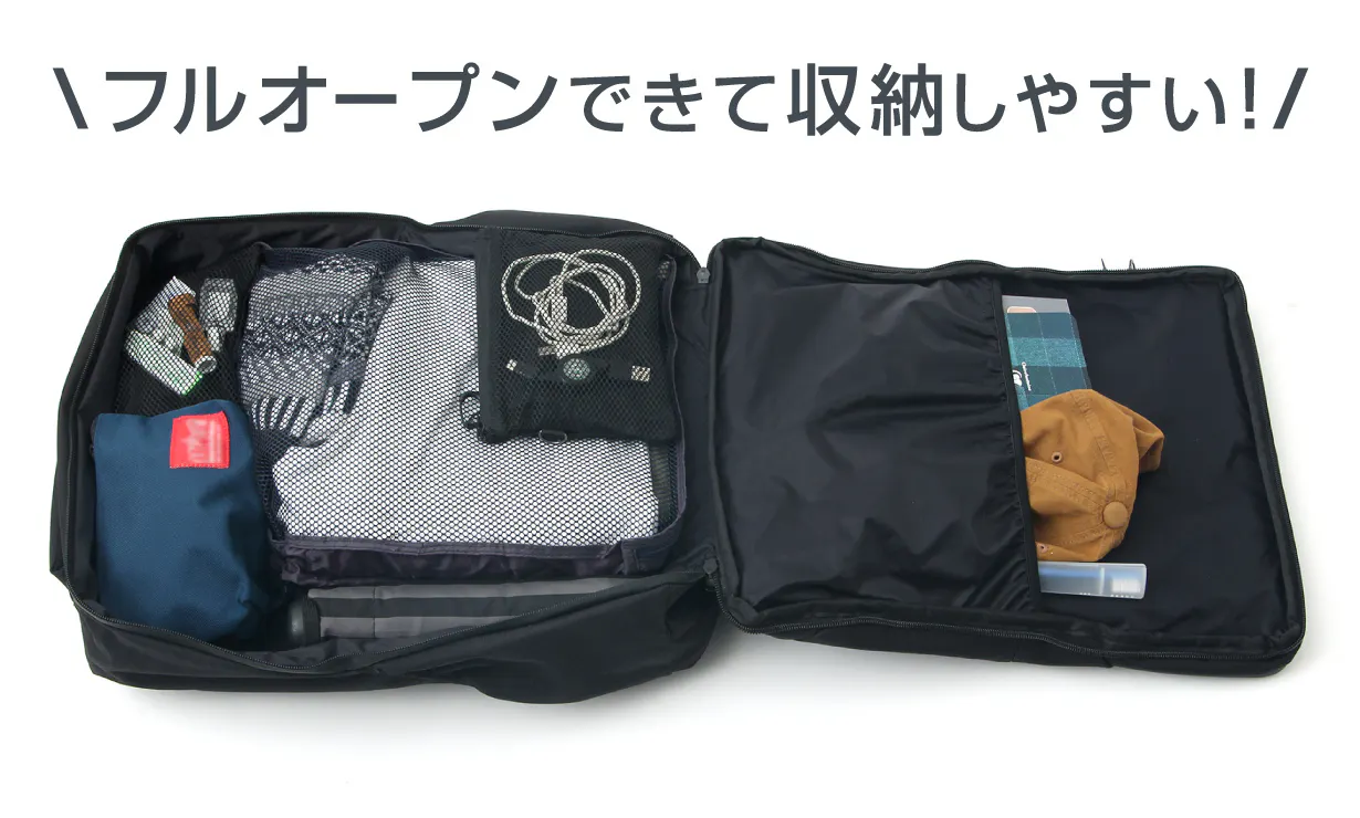3方向ガバッと開くファスナーで、まるでミニスーツケース!