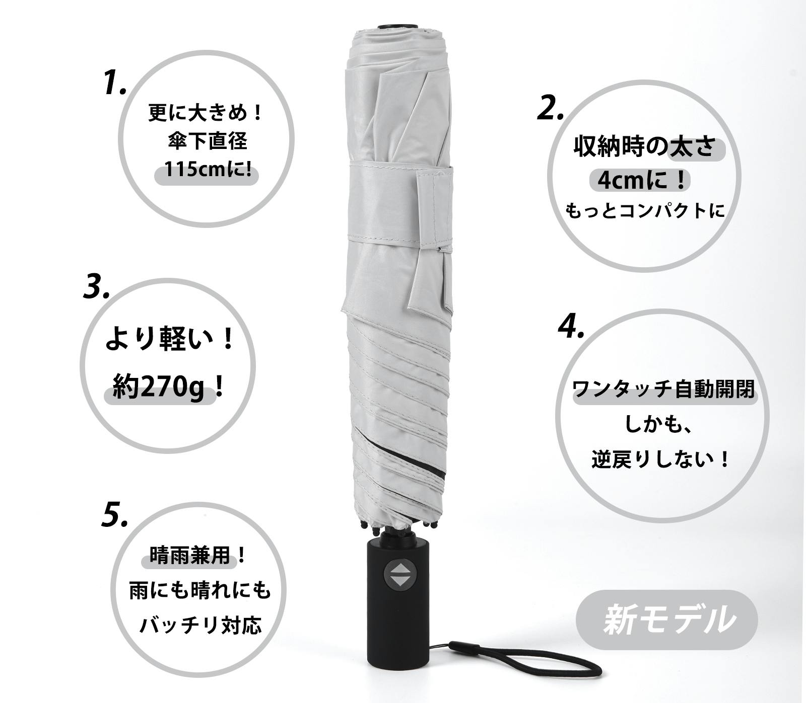 さらに、ワンタッチ自動開閉傘では珍しい厚さ40mmの極薄設計で、持ち運びもラクラク。カバンやリュックにもすっきり収納でき、外出のお供に最適です!