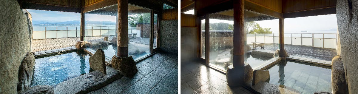目の前の海は国際航路になっていて、大型タンカーや豪華客船が今治の夜景の前を行き交う姿はまさにここでしか見られない、しまなみらしい風景です。お湯の中で寝転んでいつまでも、いつまでもその時間を味わっていたくなる、心身の整いにも絶好のお風呂になります。