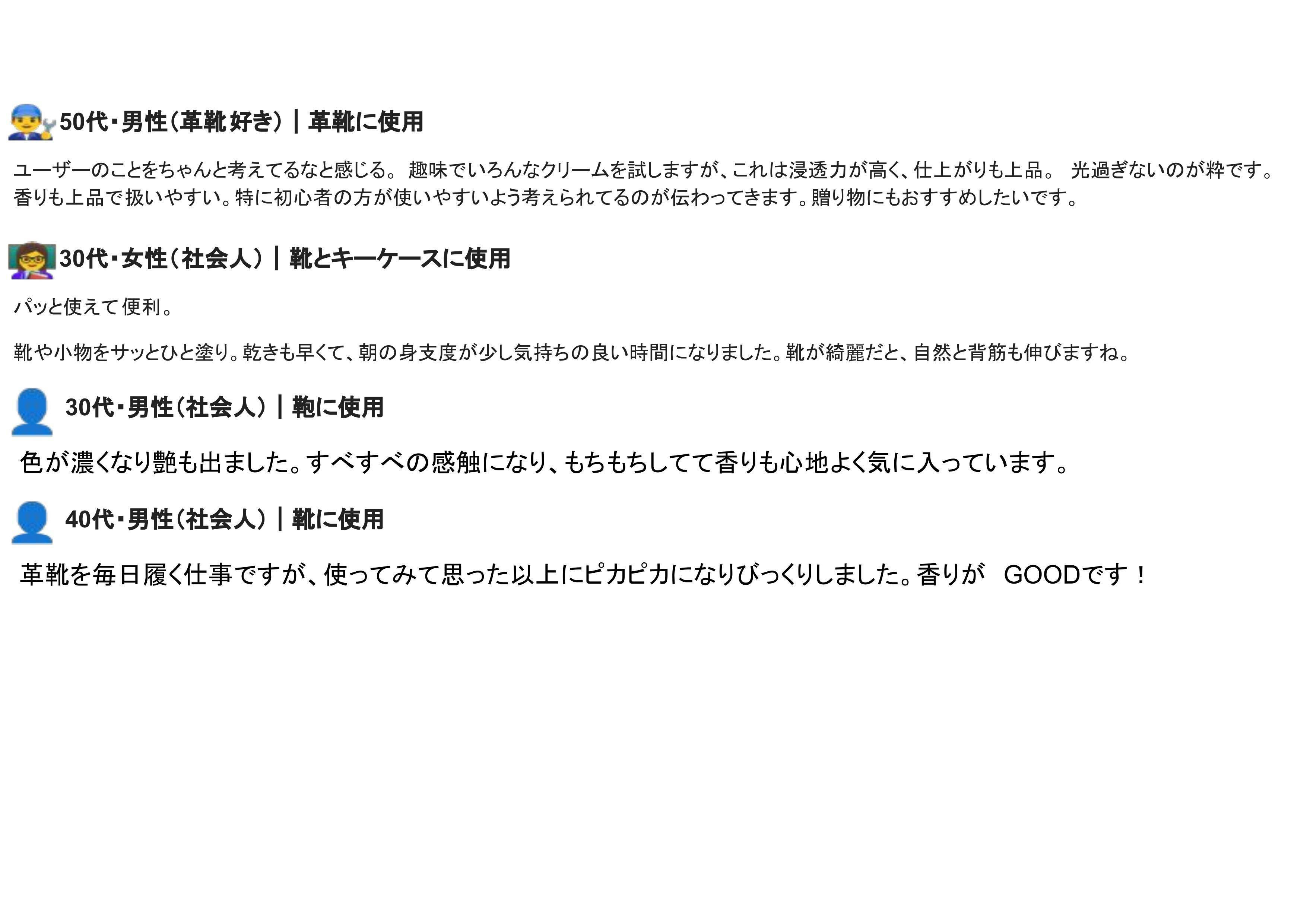 - また、一般的なスムースレザーであれば問題なく使用出来ますが、使用する際は支障のない部分に少し塗布して頂き状態を確認ください。