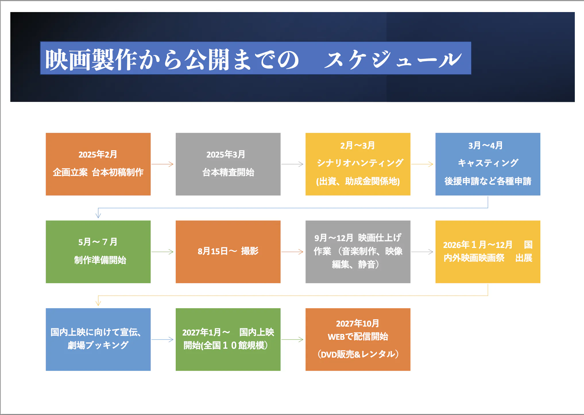 2025月 4月 現在、先行準備にてロケ地選定、スタッフリングを開始。