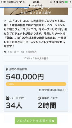 2016/07/31 22:59無事に達成!本当にありがとうございます! ご縁があってこのプロジェクトを知ってくださった方。 支援してくださったり、いろいろな方へ紹介してくださった方も沢山いらっしゃいました! 本当に何度言っても足りませんが、 ありがとうございます!! スタッフ一同とても嬉しいです。 お金が入ってくる事が、という事ではなく、 私たちの取り組みを沢山の人に知ってもらい、共感してもらい、そして一緒に作り上げていける事が、本当に嬉しいです。 応援してくださった方たちは、葉山にいらっしゃった際、自分のお陰でこの宿がある出来たんだと自慢してくださいね。 冗談抜きで、皆様が関わってくれた結果、良い宿が出来上がるのです。 サクセスこそしましたが、プロジェクトはあと1時間ほど残っています。 一緒に葉山の宿、「港の灯り」を作りたい方は是非ご協力ください! 一緒に楽しいことを沢山しましょう!! 新しい出会い、関わりを楽しみにしています。 本当に、ありがとうございました! もっと見る