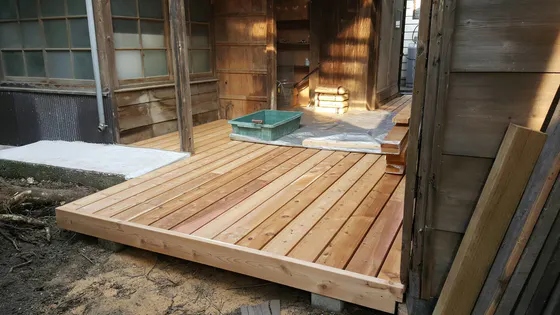 毎日、着々と工事を進めておりますが、とうとうウッドデッキが出来上がりました!