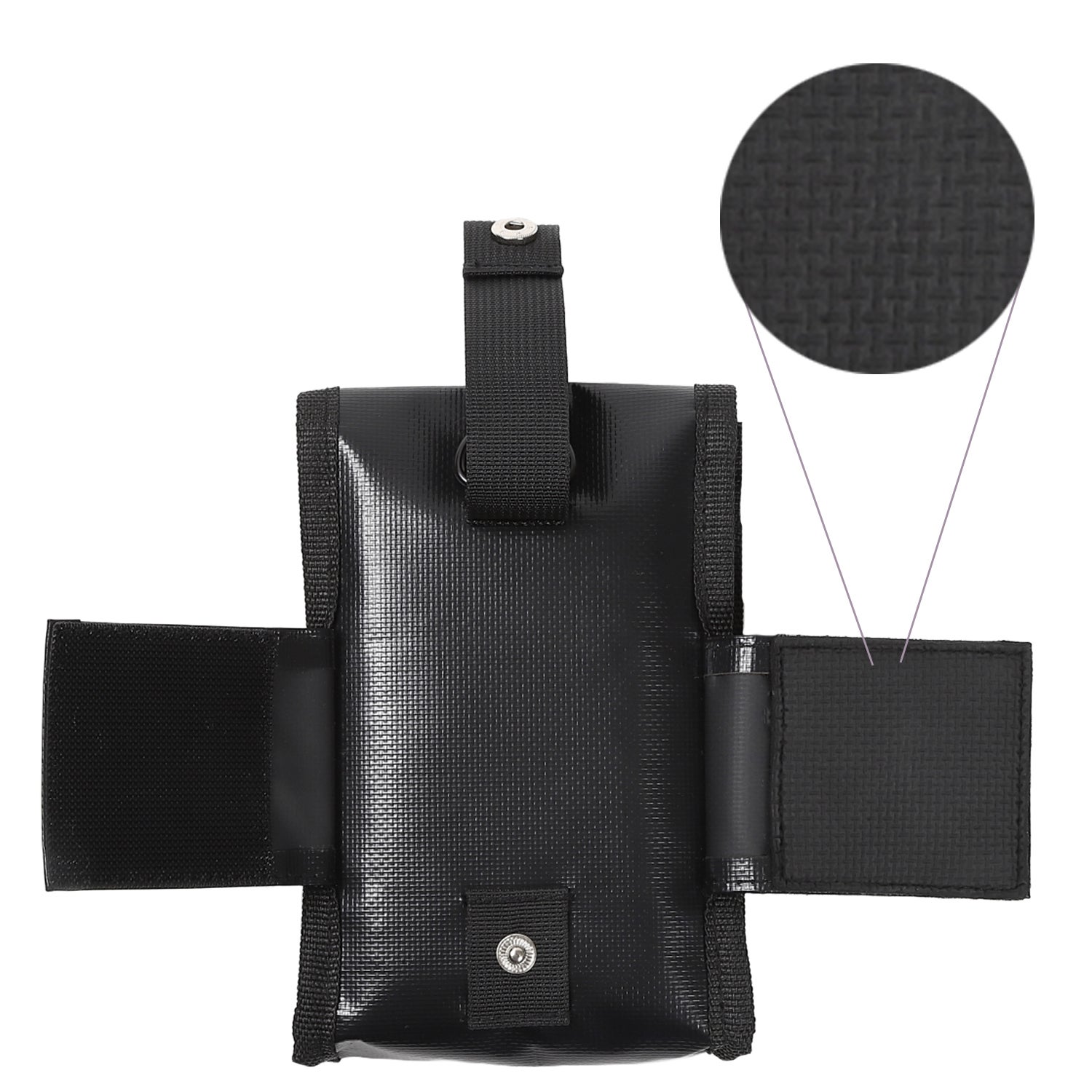 A: ポーチのストラップの滑り止め加工でずれにくい仕様ですが、よりズレにくくするためにはカラビナを併用もしくは、リュックにチェストストラップが付いていればその上側にポーチを付ければずれません。