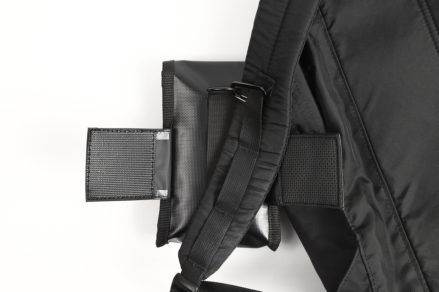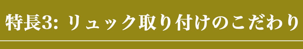 リュックへの装着にも工夫を凝らしました。他製品でよくある「ズレ落ち」の問題を防ぐための設計です。