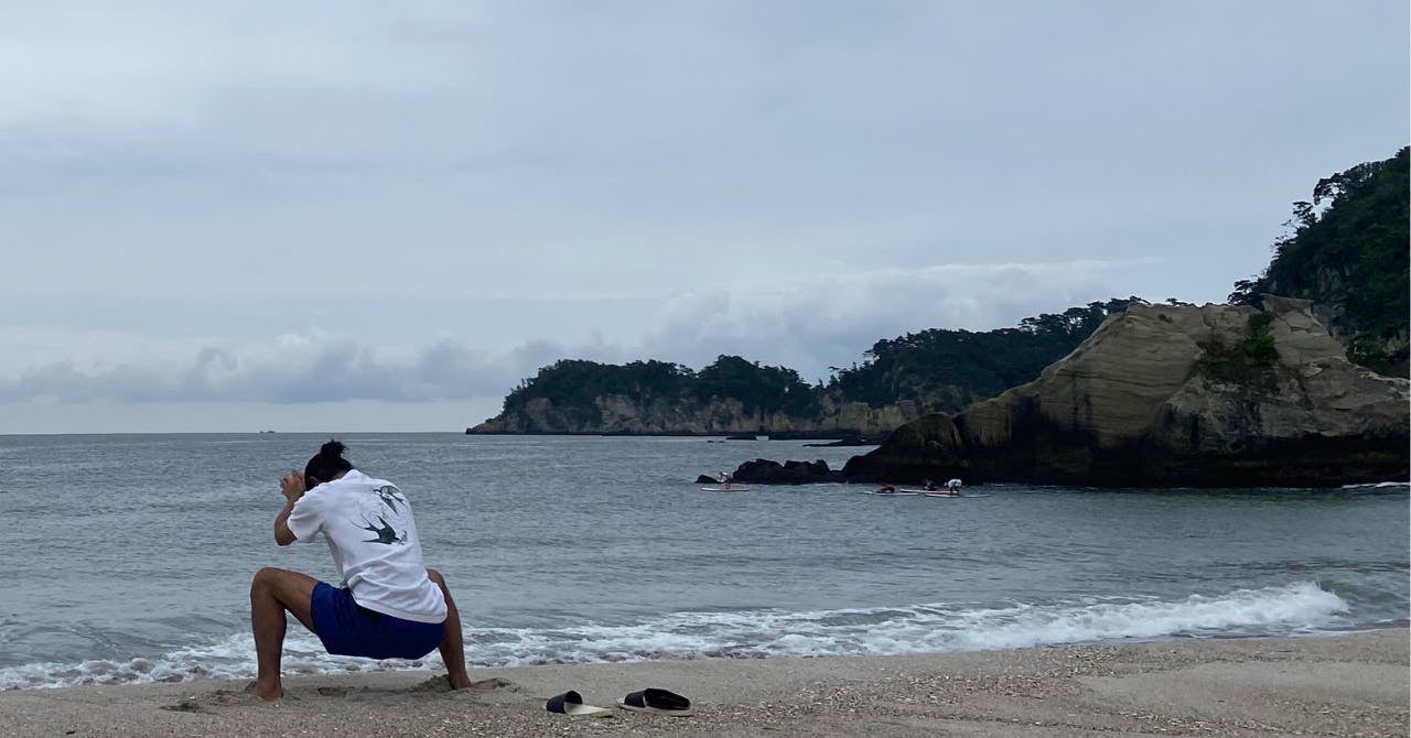 彼は毎朝、砂浜で四股を踏み、裸で海に入り、太陽の光を全身で浴びながら一日を始めます。