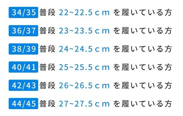例えば36/37は、普段23-23.5cmを履いている方に適しています。弾力性があるので、心配しなくてご利用いただけます。