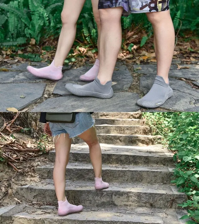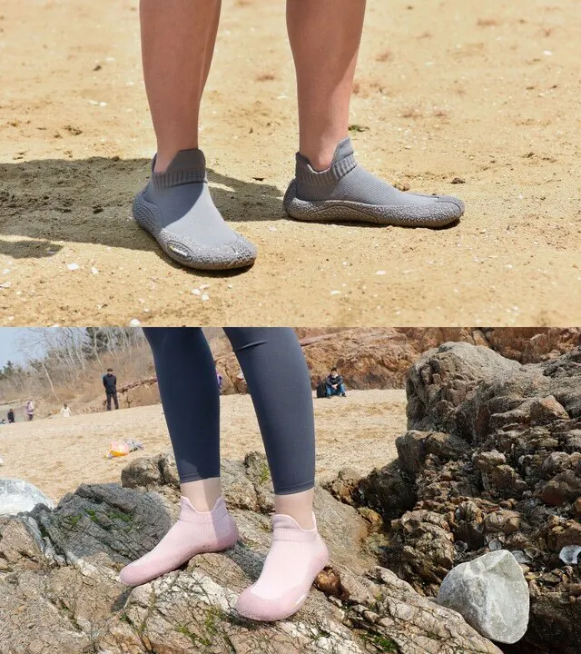 靴底は高品質なゴムを採用することで、磨滅に耐えられ、靴底の表面には滑り止め溝があるので、室内の運動だけではなく、岩場でも歩く可能になります。