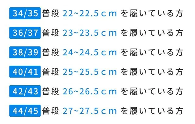 ご自身の足に合うサイズをお選びください。