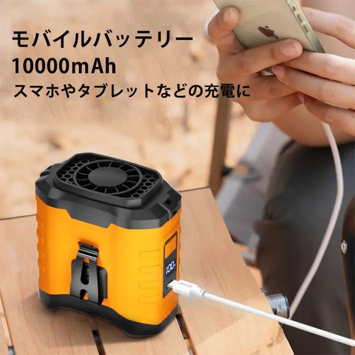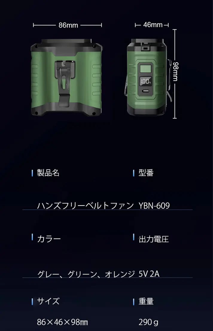 近年手持ち扇風機は溢れるくらい普及してますね。手持ち扇風機もいいと思いますが、手が塞がっている時は使えないというデメリットがあります。「YBN-609」ハンズフリーベルトファンは手を自由にすることで、涼しい風に当たりながら作業することができます。「YBN-609」ハンズフリーベルトファンは10000mAhの大容量バッテリーを搭載し、最長42時間連続稼働可能なため、キャンプなどお泊りで使うときも役に立つこと間違いないです。