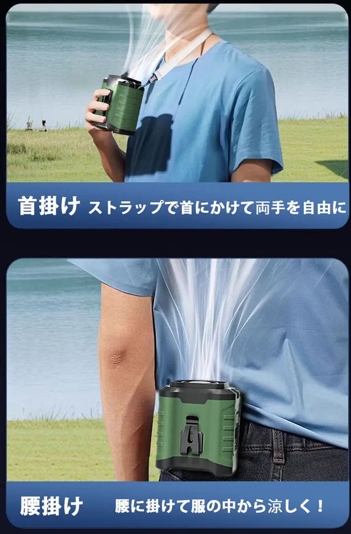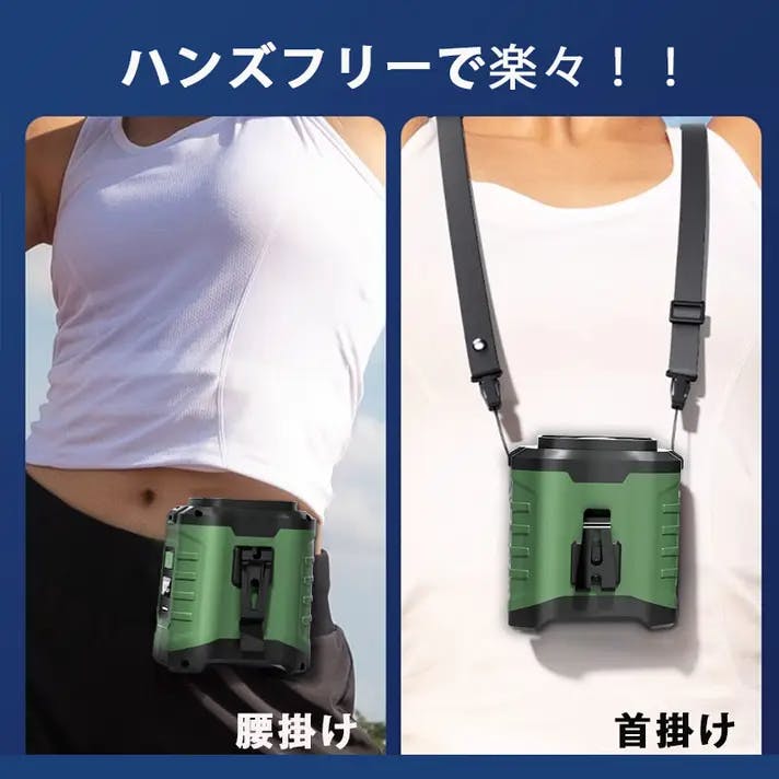 ベルトに付けて服を被せるだけで1秒で服の中から涼しくなります。