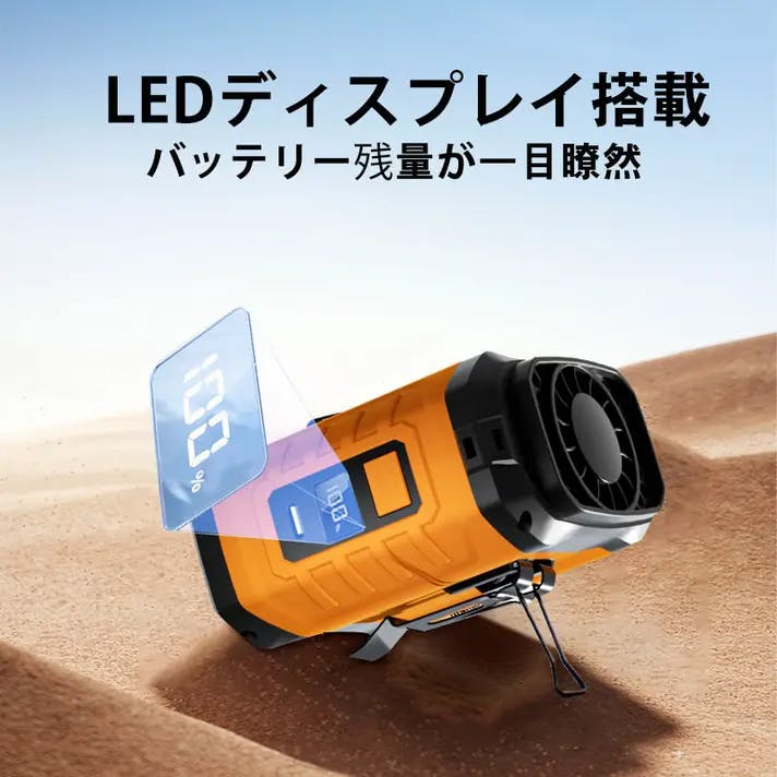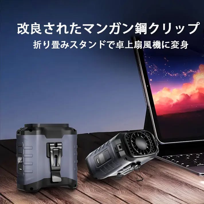 表裏にマンガン鋼クリップが付いており、服を固定することで涼しい風を逃がしません。