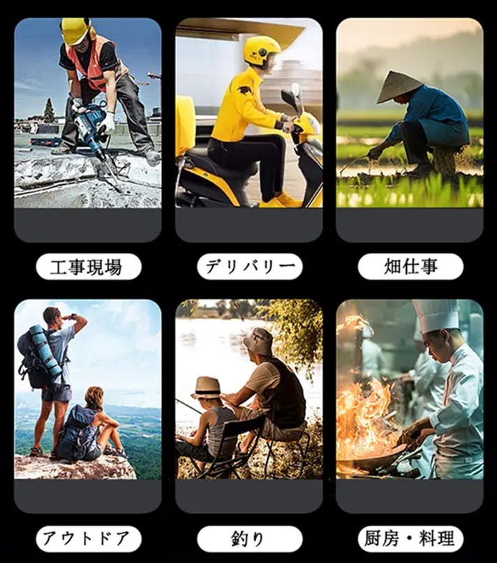 両手を自由に解放でき、登山や釣りなどのアウトドアだけでなく、工事現場や警備、デリバリー宅配や畑仕事、厨房での作業や自転車通勤通勤通学など様々なシーンで活躍できます。
