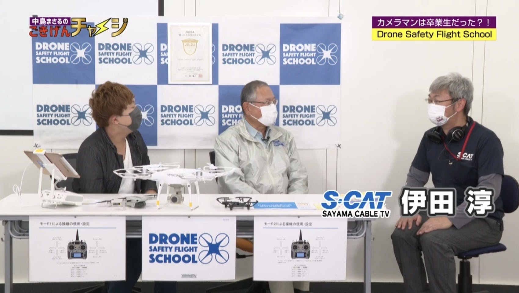 狭山ケーブルテレビのバラエティー番組に、ドローンスクールの卒業生としてゲスト登場した放送回もあり、YouTubeで見ることができるそうです。