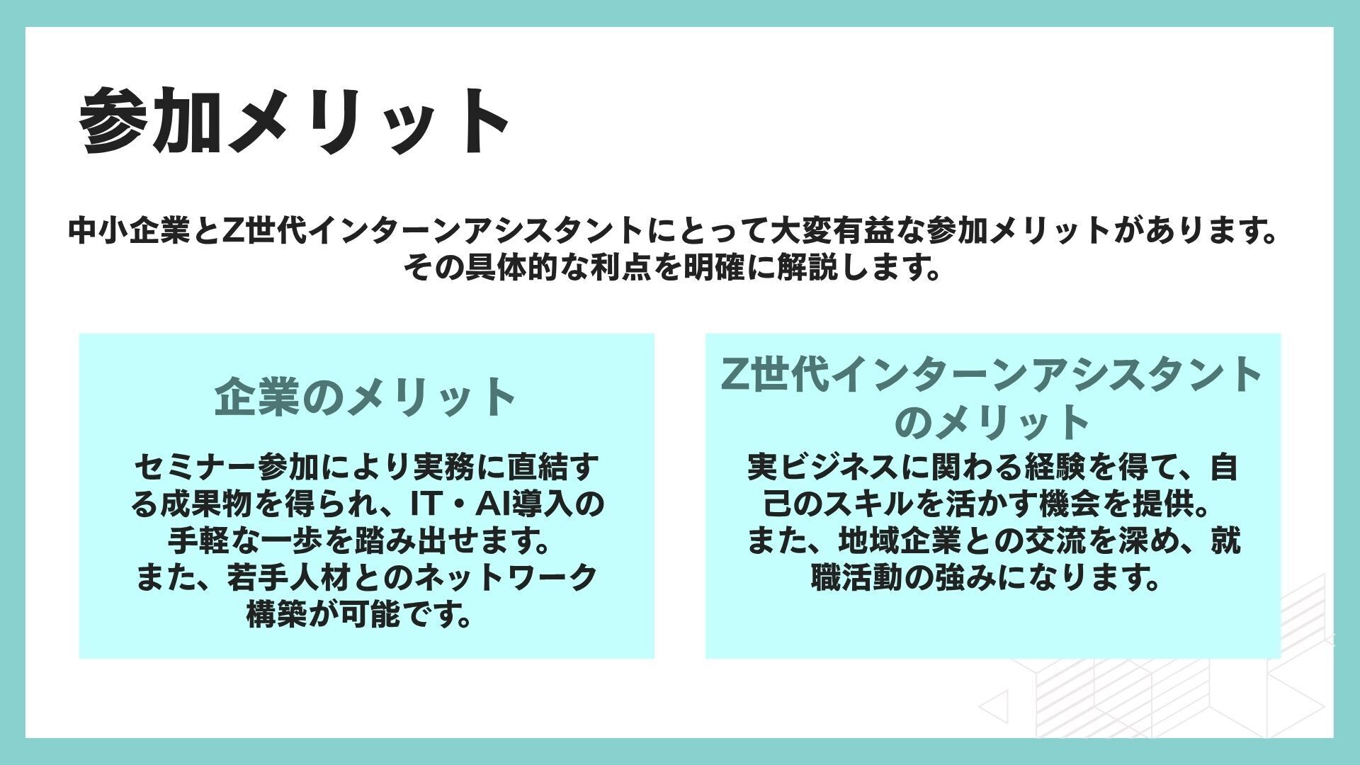 地域の中小企業が「専門家に頼らなくても自分で活用できる」力を得て、Z世代は「社会に必要とされるスキルを持つ人材」へと成長できる。