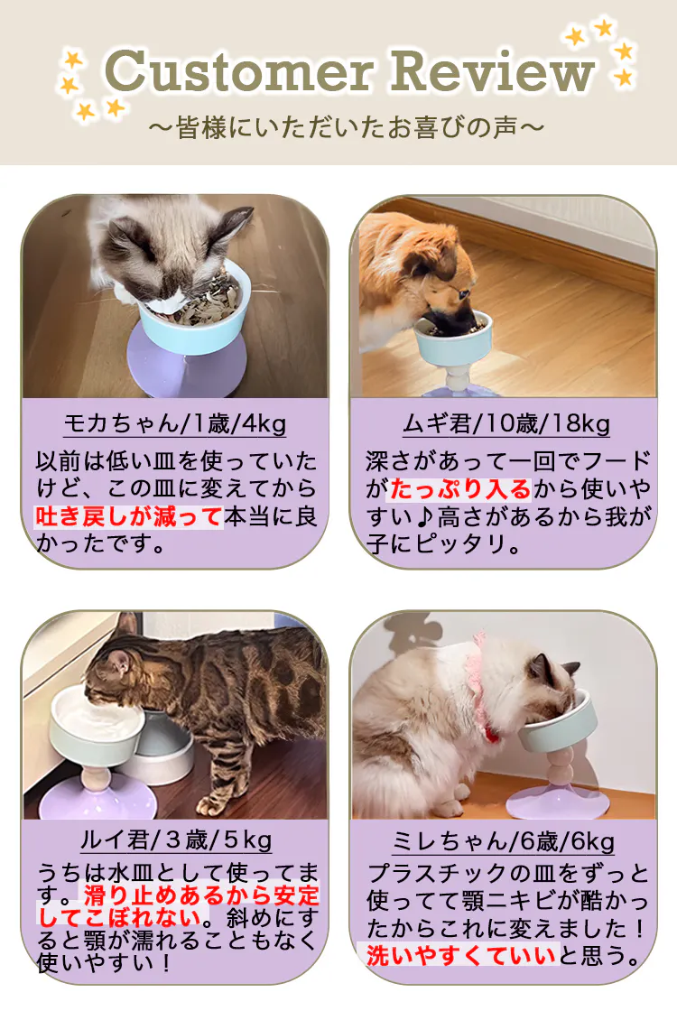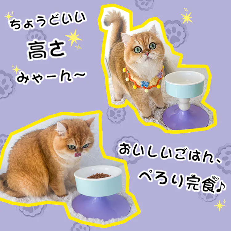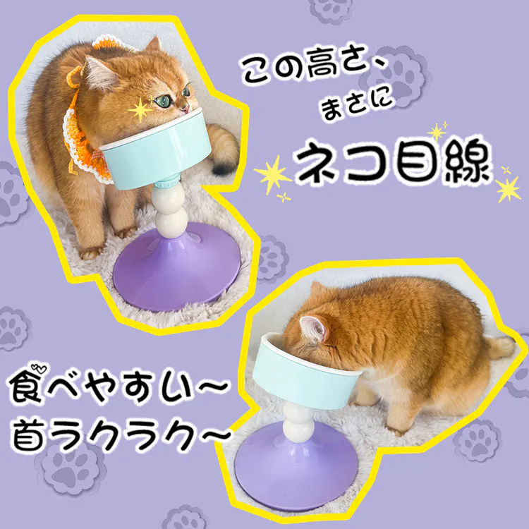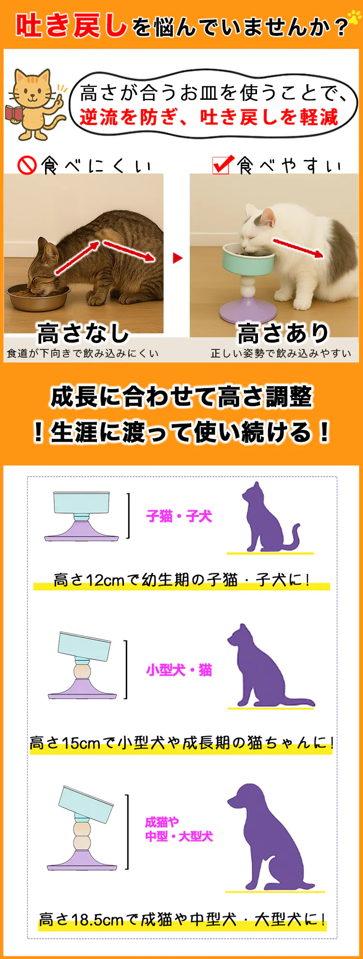 成長に合わせて高さ調整【食べやすいペットボウル!】幼生期からシニア期までずっと使えて、吐き戻し防止・顎ニキビ防止も!