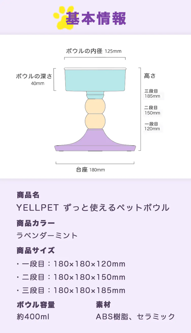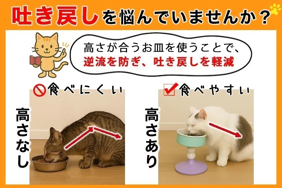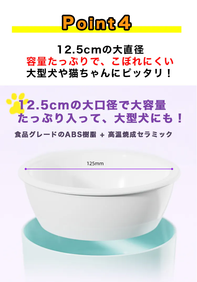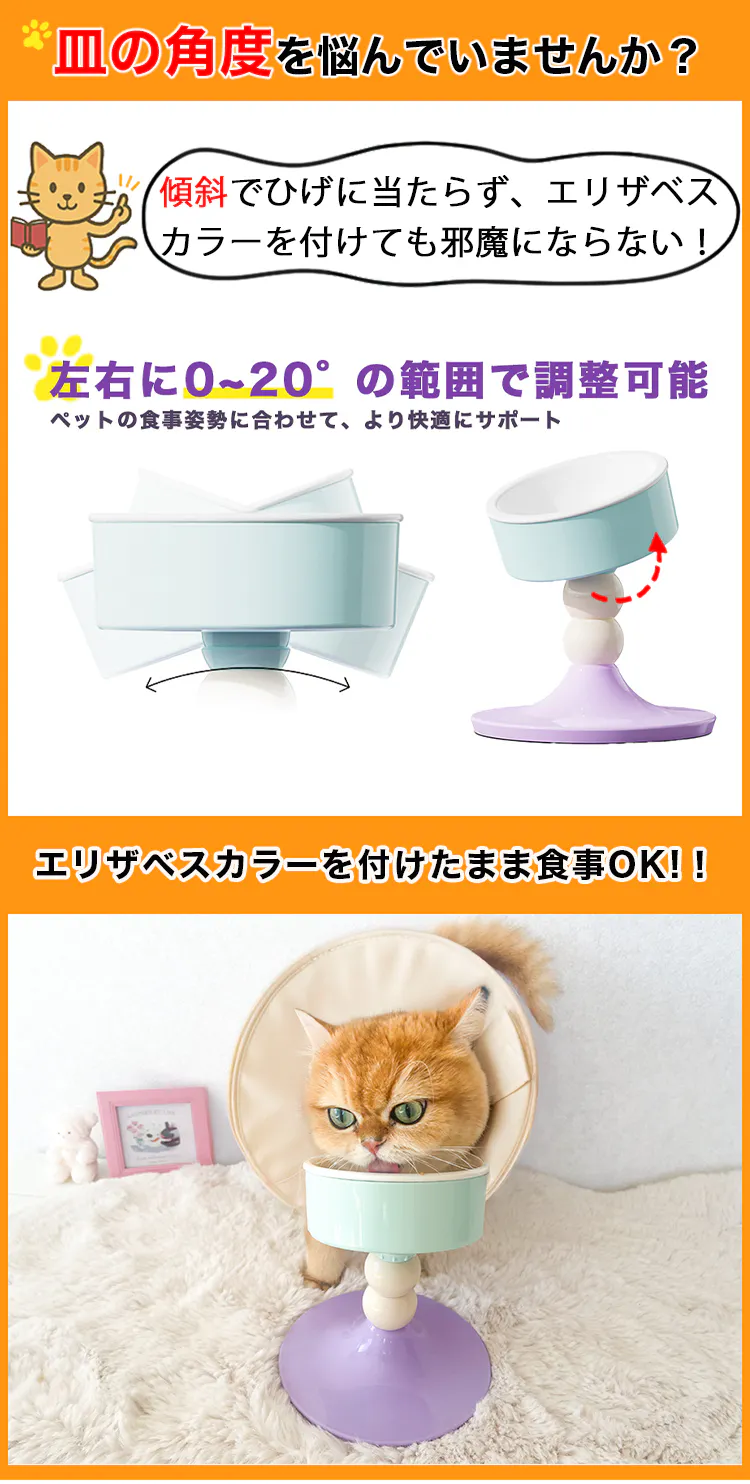 成長に合わせて高さ調整【食べやすいペットボウル!】幼生期からシニア期までずっと使えて、吐き戻し防止・顎ニキビ防止も!