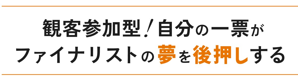 スポンサーや審査員だけでなく、会場にいる“あなた”も、夢の実現に直接関われます。 当日配布されるパンフレットにある QR コードから、 「一番応援したい!」と思うファイナリストに投票できます。 あなたの一票が、起業家の背中を押し、夢の実現を後押しする力になります。
