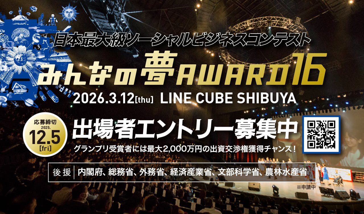 『みんなの夢 AWARD』は、過去15年連続で開催し、2026年3月にも第16回大会を東京・渋谷のLINE CUVE SHIBUYA(渋谷公会堂)で開催いたします。
