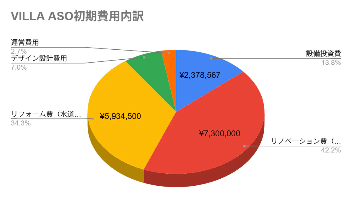 VILLA ASOオープンに必要な総額1700万円のうち 300万円を本プロジェクトでご支援いただきたく存じます。