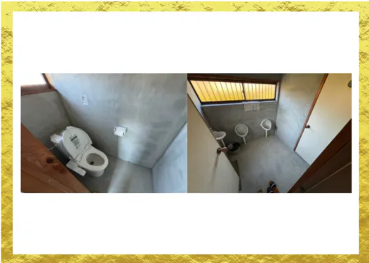 不要品の撤去が終わってからは、解体や塗装など、自分たちの手でできる部分を協力しながら少しずつ進めています。なかでも最も衝撃を受けたのは水回りでした。今では想像しにくいですが、当時のトイレは小便器と大便器に分かれ、大便器はぼっとん便所。浴室もなく、「本当にこの状態から宿になるのか」と思わされました。現在はリノベーションを進め、快適に使っていただける水洗式のトイレや、広々とした浴室を新設しており、お客様に安心してご利用いただける空間へと生まれ変わりつつあります。