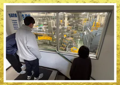 工場内では、原料の受け入れから殺菌・充填・パッケージングに至るまでの流れを学ぶことができ、「安心・安全」がどのように守られているのかを実感していただけます。