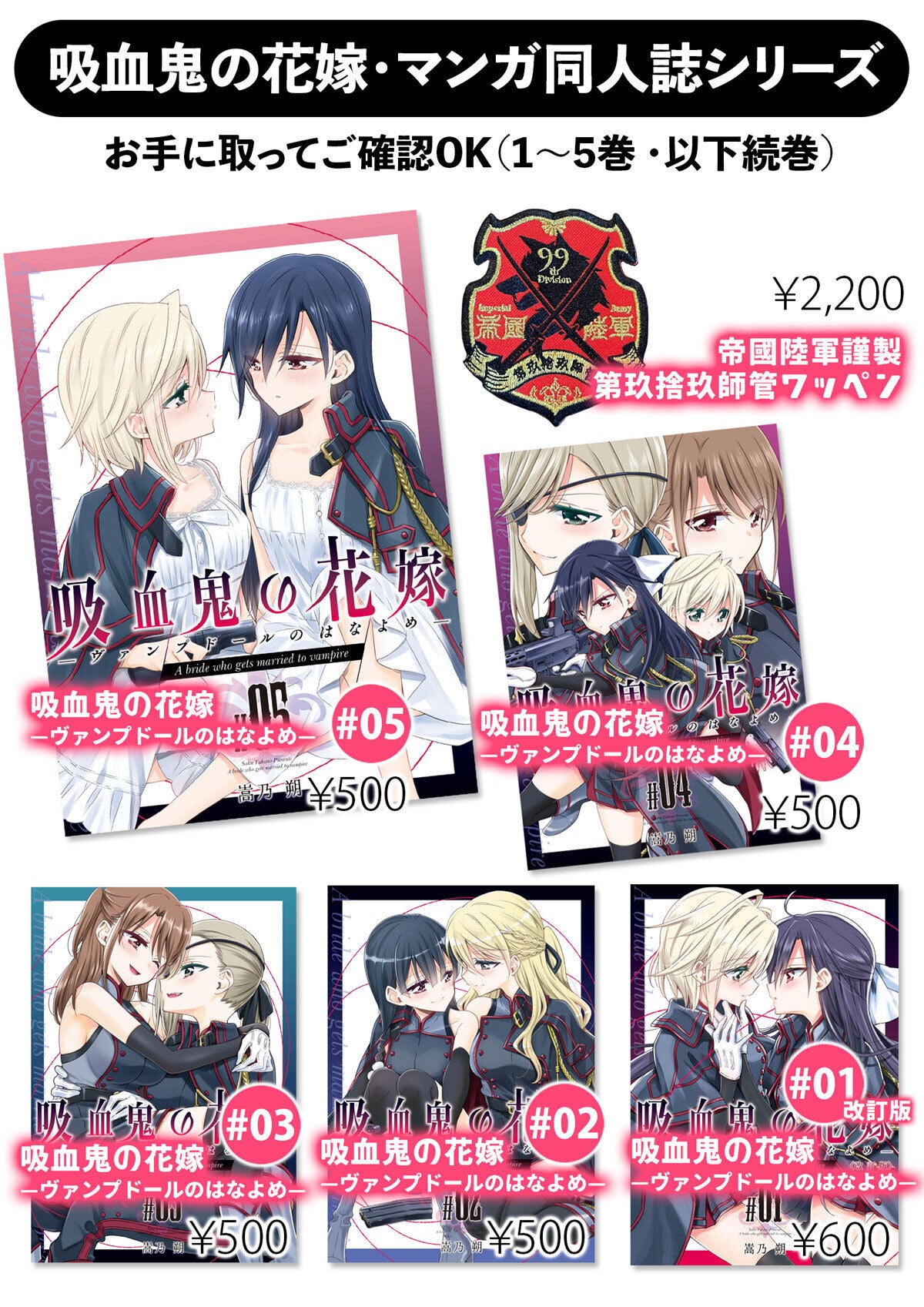 また「吸血鬼の花嫁」シリーズの同人誌(漫画)と作中に登場する軍隊ワッペンも購入出来ます!