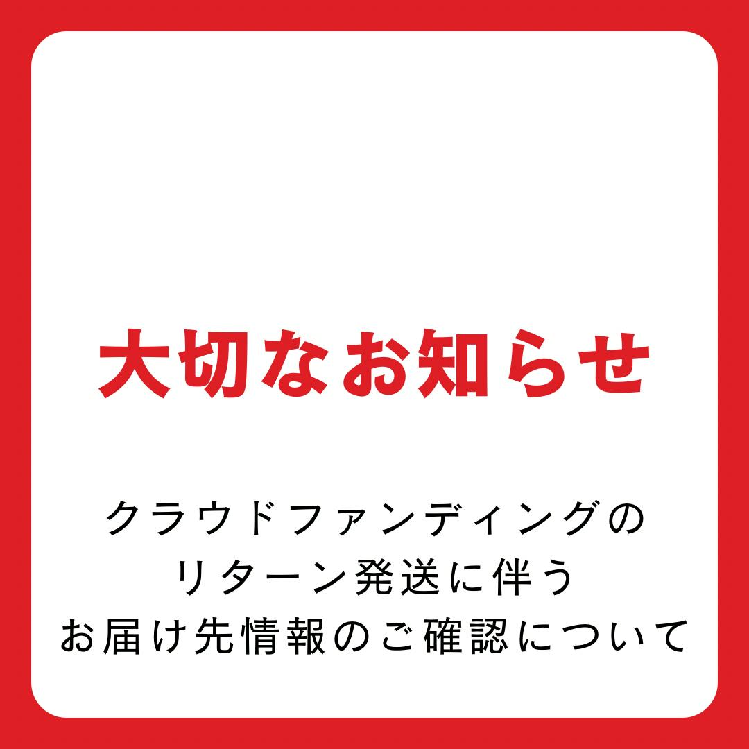 このたび、リターンの発送準備を進める中で、一部リターンにつきましてお届け先のご確認が必要となりました。