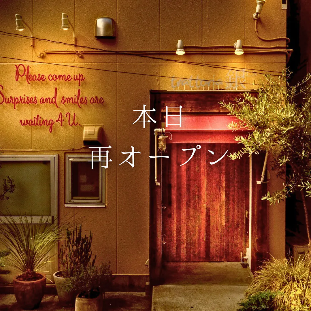 皆さまのおかげで、トラットリア銀は本日、同じ場所で再オープンを迎えることができました。