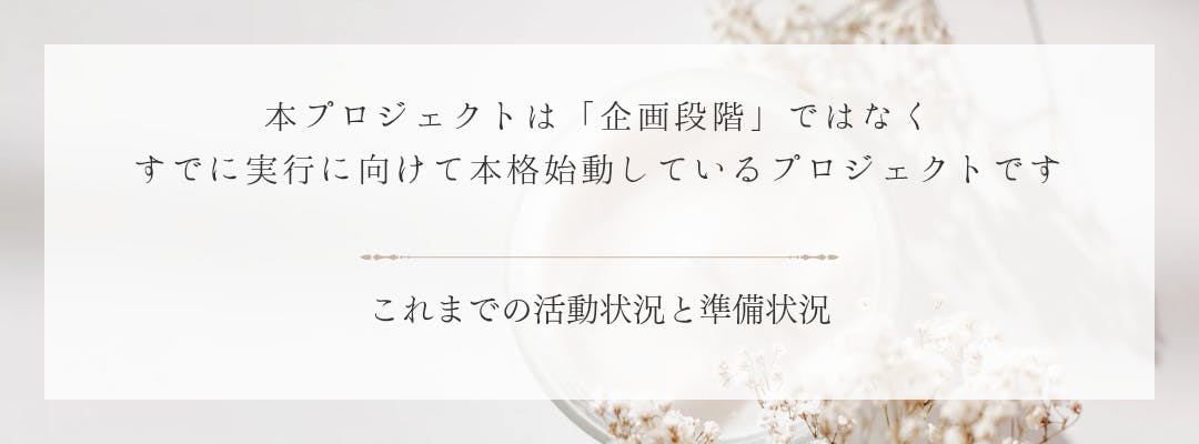 本プロジェクトは「企画段階」ではなく、すでに実行に向けて本格始動しているプロジェクトです。