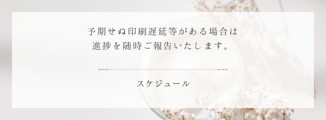 ※予期せぬ印刷遅延等がある場合は、進捗を随時ご報告いたします。