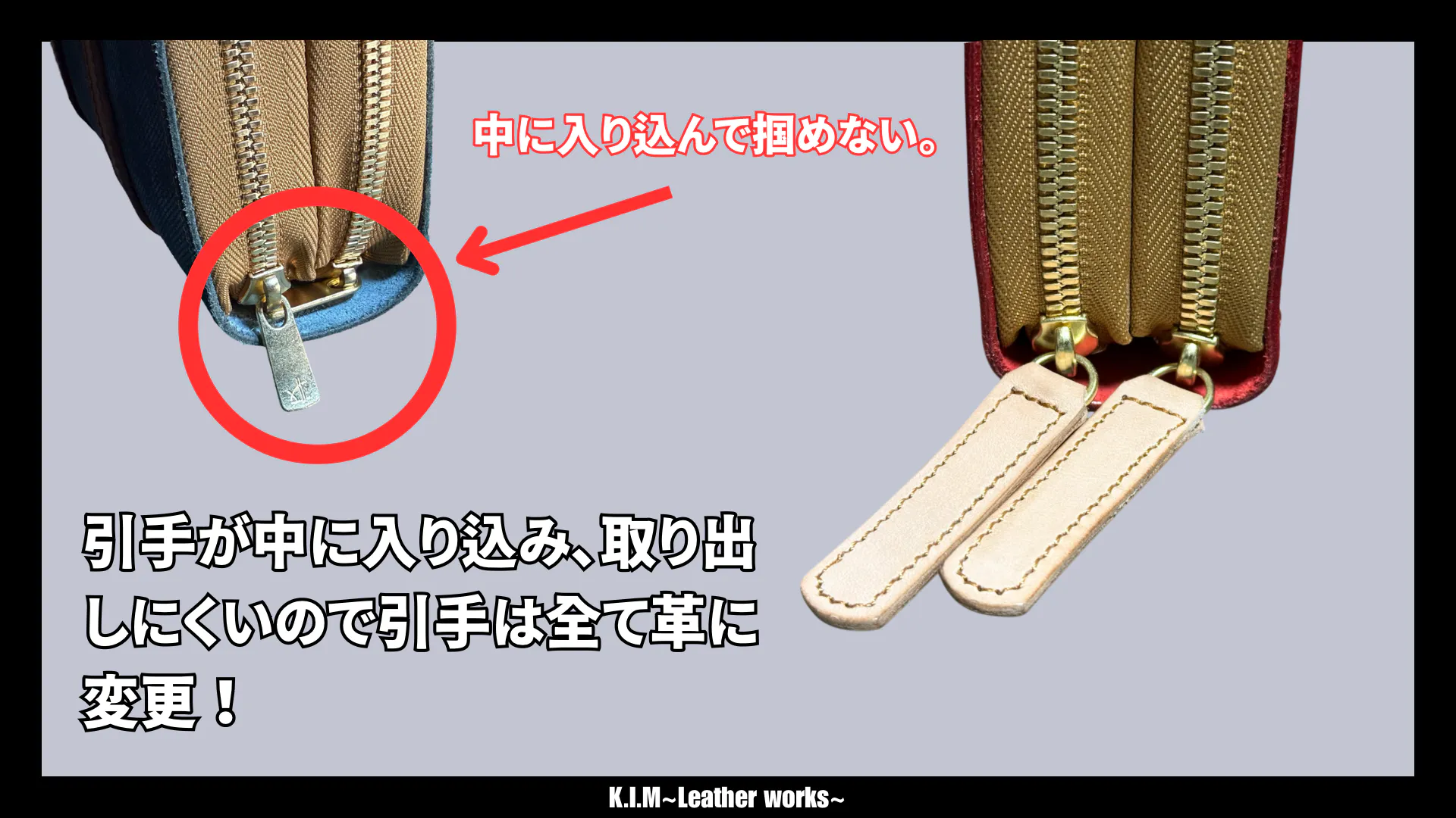 K.I.M ~Leather works~ では2011年、職人を始めた頃から現在も修理は全て無料で行っています。 金具やファスナー交換など購入頂いた商品の修理は全て無料ですので購入後も安心してお使い頂ける様アフターフォローも万全です!