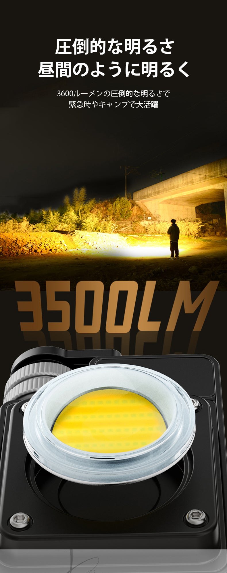 一般的なライトは約50ルーメンほどで、300ルーメンあると高輝度で明るいとされています。しかし、K76は約3600ルーメンもあり、前方を一瞬で昼間のように照らします。