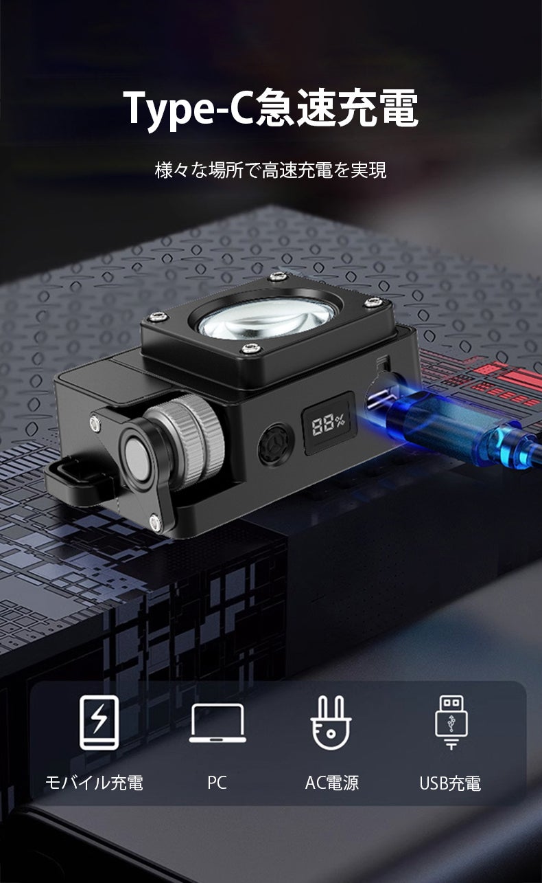 強力マグネット採用で両手が自由に使えるので、夜間に車の整備をしたり、ライトで照らしならがら物を探せます。