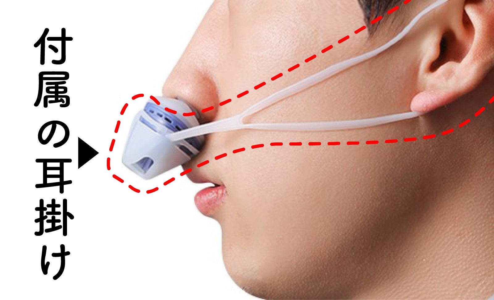 鼻栓は4層のストッパー付きのうえに、付属の耳掛けでしっかり固定。
