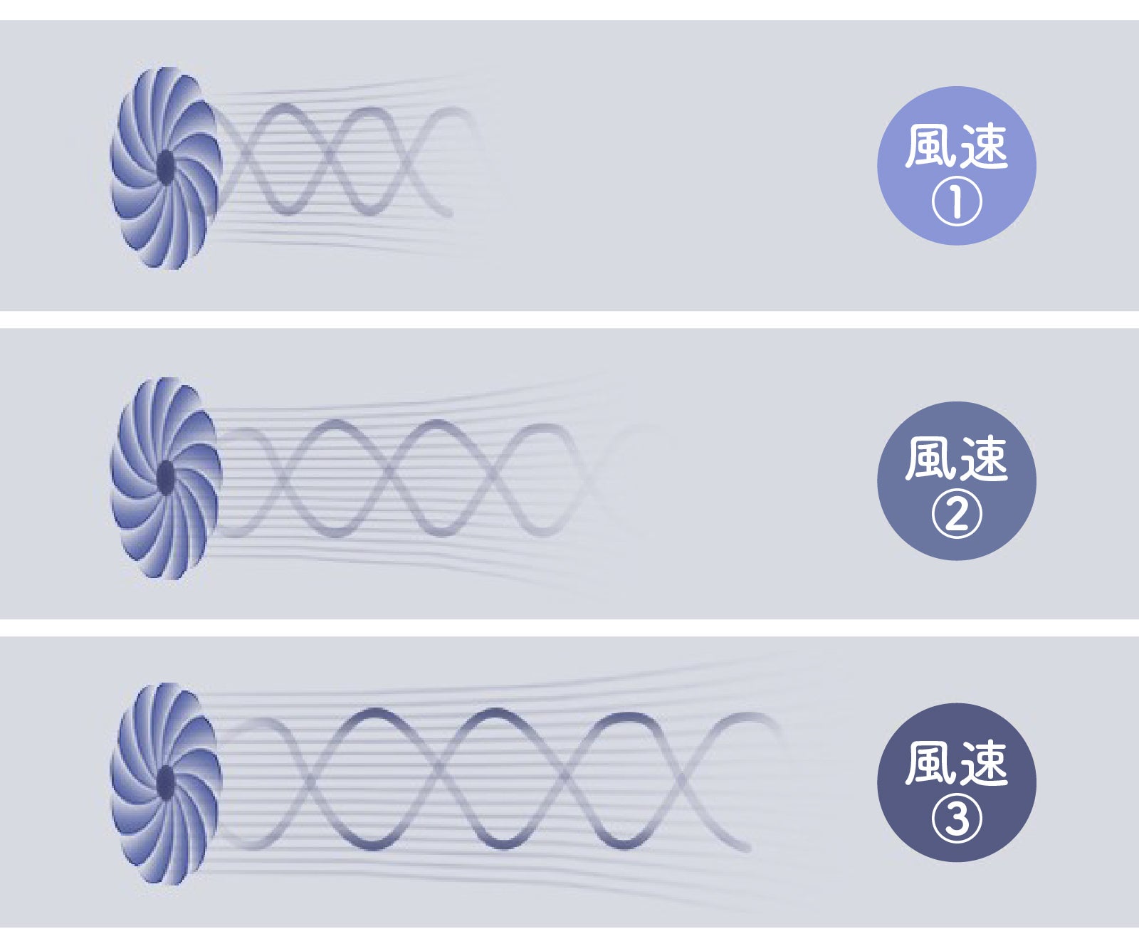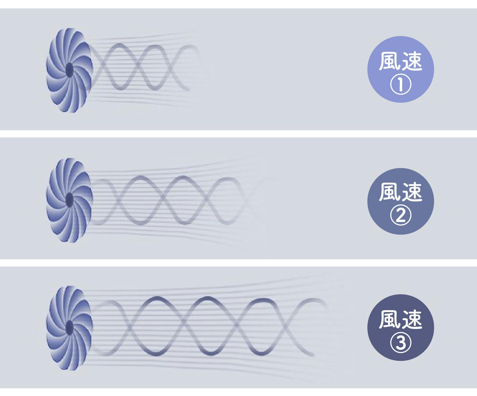 ファンの風速は3段階(弱・中・強)で調整が可能。