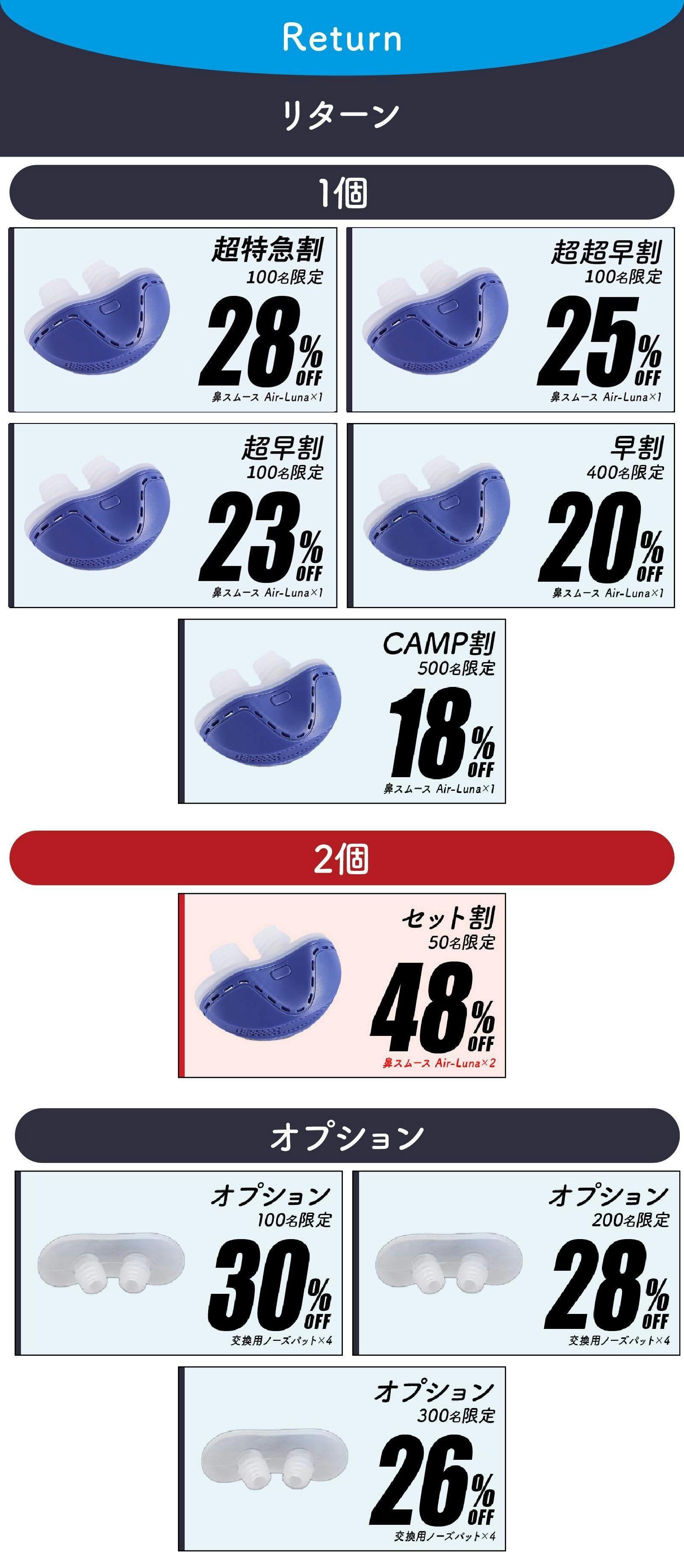 ◯ リターン価格:各リターン記載の通り